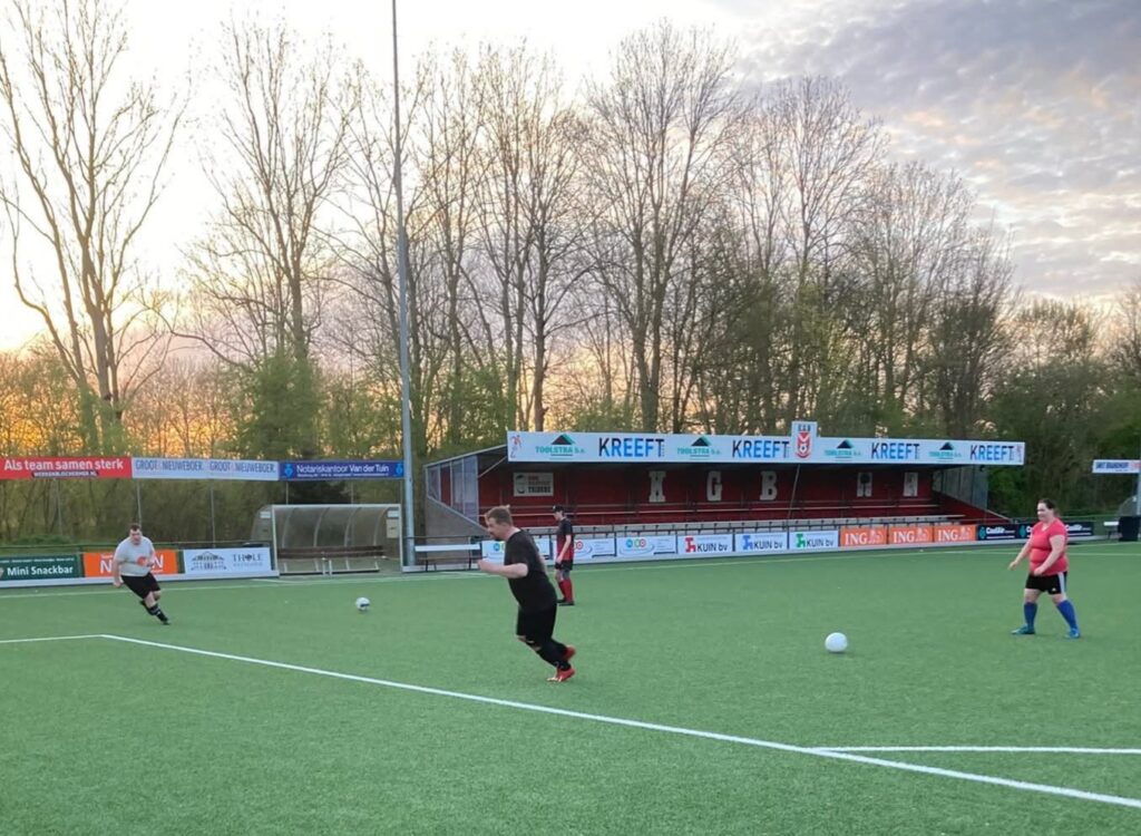 De avond begon gezellig in de kantine, waar iedereen zich verzamelde voordat we richting de kleedkamers gingen om ons om te kleden. Daarna gingen we met z’n allen het veld op en kon de vierde training van start.